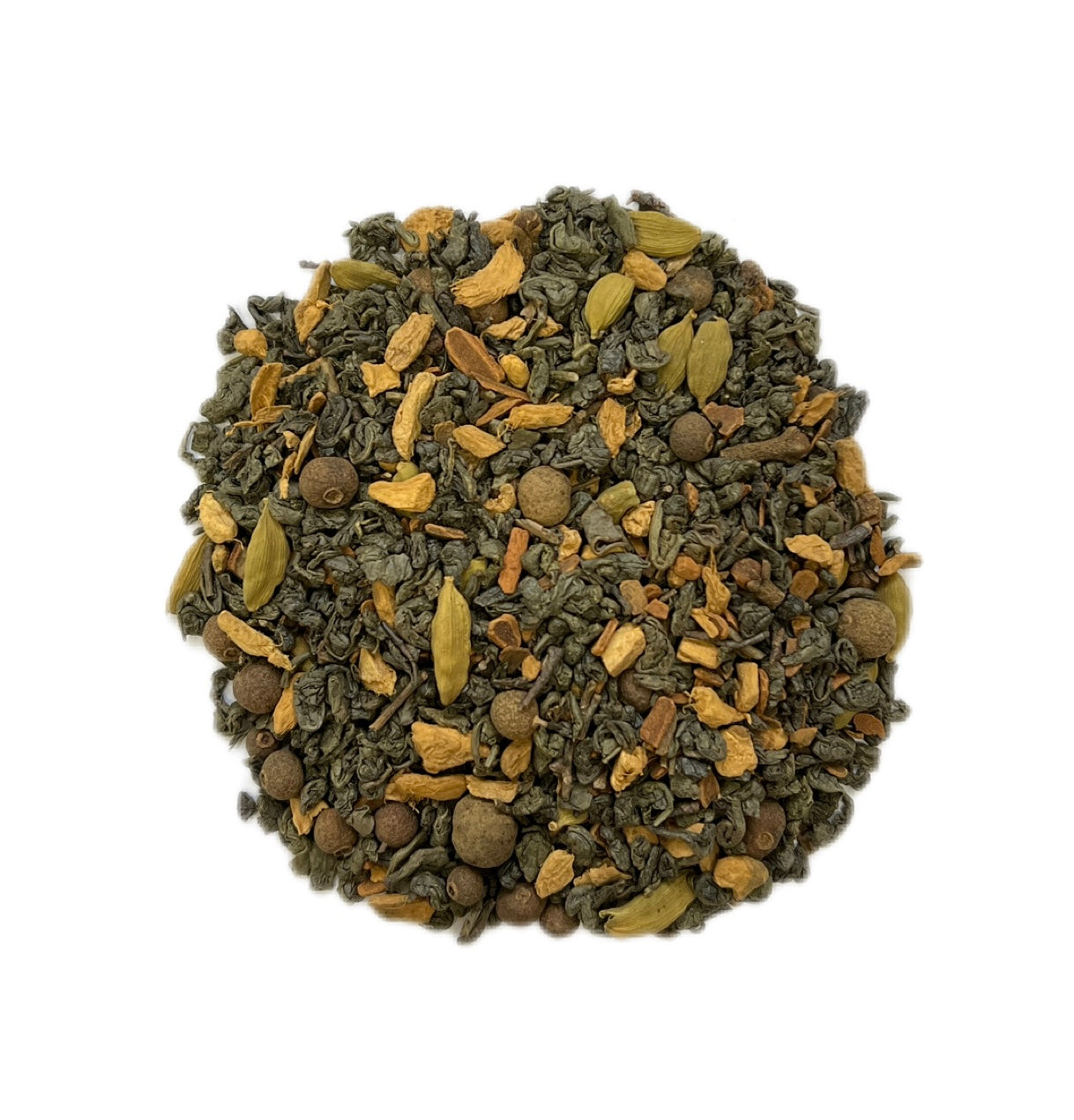 Green tea, Cinnamon, Ginger, Green Cardamom Pods, Allspice, Cloves, Black Pepper